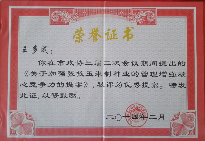 張掖市多成農業有限公司是一家以玉米雜交種生產經營為主的農業科技型民營企業。公司由兩個種子加工廠和1個良種繁育基地及1個優質梨示范基地組成。加工廠占地15.8萬平方米,擁有種子加工線3條,檢驗室2個,年生產、加工能力2000萬公斤。有良種示范基地2000畝,優質梨示范基地500畝。固定資產總值超億元。 公司自成立以來,選育、示范推廣“正德”系列玉米新品種3個,年銷量1000多噸。先后與東北、華北、黃淮等地的多家大型種子企業建立了穩定的……[查看全文] |